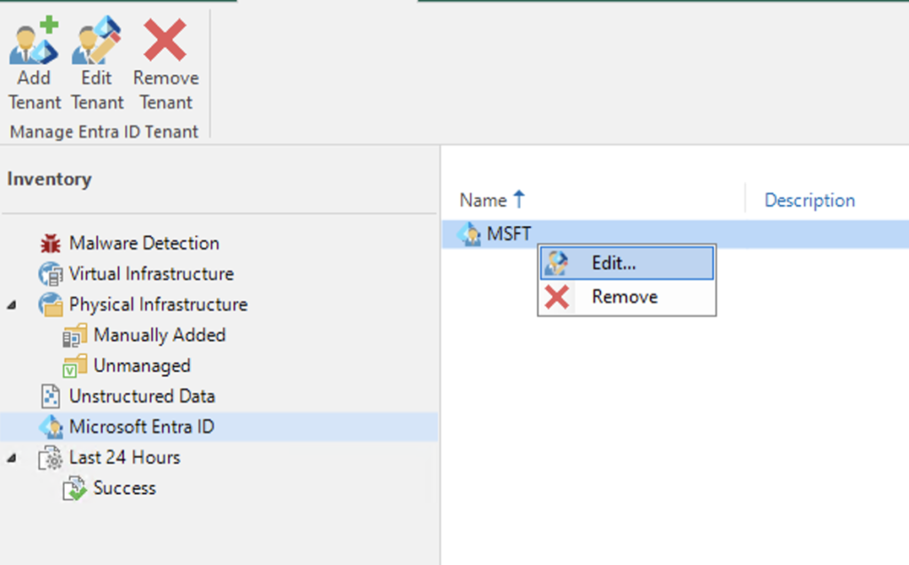 In the VBR, navigate to Inventory -> Microsoft Entra ID -> Right click the tenancy -> Edit.