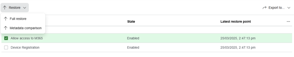 Once done, rerun the backup and have the conditional access backedup by the Entra ID tenant job in Veeam backup and Replication.