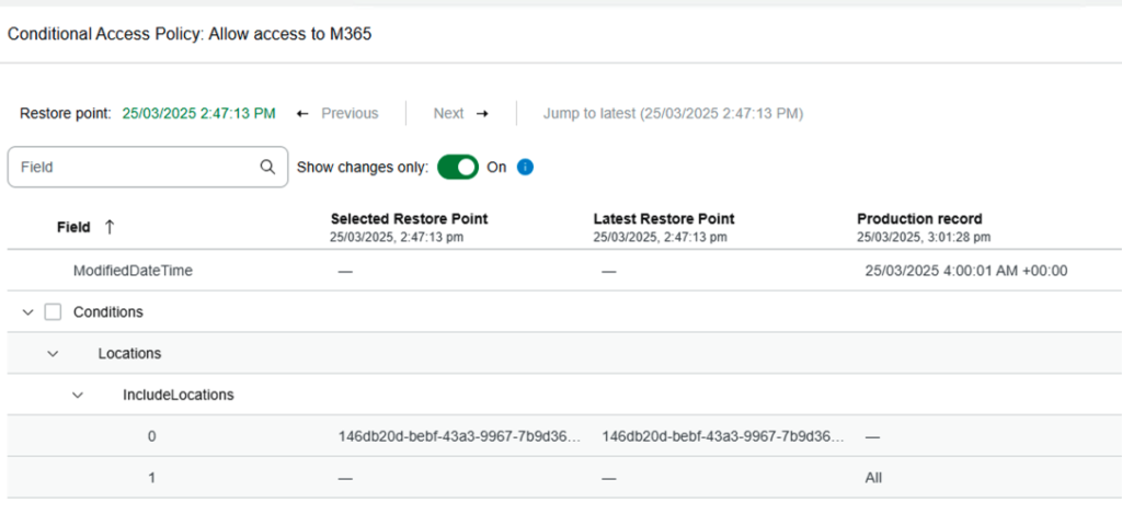 After we go through the restore, we will be able to restore the entire conditional access policy.