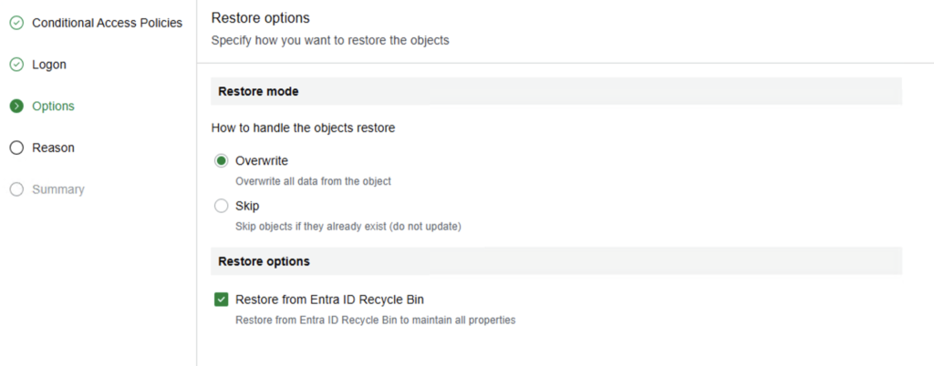 From the restore perspective, we can restore the entire conditional policy or just the metadata.