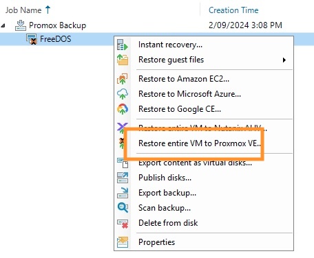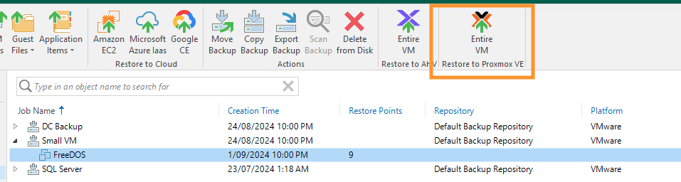 Let’s walk through the process of migrating a small FreeBSD VM, currently protected as a VMware VM, to Proxmox using Veeam 12.2.