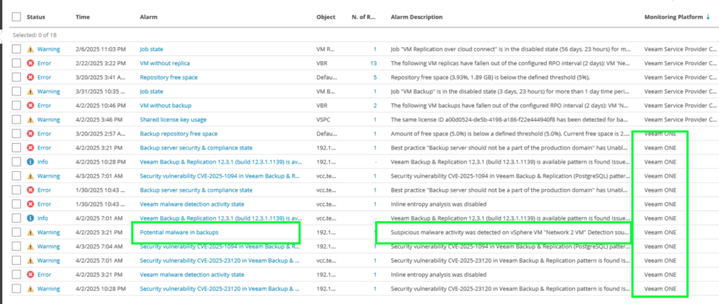 Integrating threat detection monitoring in VBR with VSPC and VeeamONE, along with alarm synchronization, offers holistic threat monitoring for MSPs. This integration enhances security, improves efficiency, and provides a unified view of the infrastructure for proactive threat management.