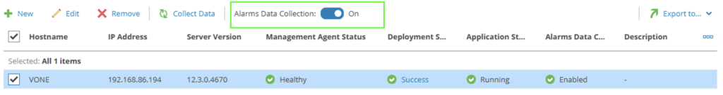 Under Servers, you can add the new VeeamONE server and enable Alarm Data Collection.