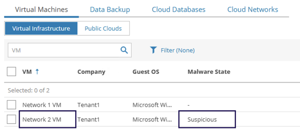 Once this connection is established and the VBR is manageable from the service provider console, service providers can have visibility over the protected VMs and their malware state.